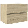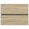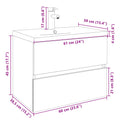 This handy bathroom furniture set, featuring spacious storage space, is an excellent addition to your bathroom, giving it a tidy and striking appearance! Long-lasting material: The engineered wood is of exceptional quality with a smooth surface and also features strength, stability and resistance to moisture.Durable material: The bathroom sink, made of ceramic, has a durable surface that resists impacts, stains, and scratches, ensuring its long-lasting shine.Ample storage space: The bathroom cabinet offers ample storage space for keeping your various daily essentials well organised and within easy reach.Space-saving design: The bathroom furniture can be wall-mounted to add extra storage space. That way, you can maximise your floor space and keep the area clean. Good to know:Screws and plugs for inside the wall are not included. We advise you to find and use screws and plugs suitable specifically for your walls. If you're not sure, you can consult with a professional. Please read and follow each step of the instructions.