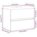 This handy bathroom furniture set, featuring spacious storage space, is an excellent addition to your bathroom, giving it a tidy and striking appearance! Long-lasting material: The engineered wood is of exceptional quality with a smooth surface and also features strength, stability and resistance to moisture.Durable material: The bathroom sink, made of ceramic, has a durable surface that resists impacts, stains, and scratches, ensuring its long-lasting shine.Ample storage space: The bathroom cabinet offers ample storage space to easily accommodate your essential toiletries and bath items such as soaps, shampoo, toothpaste, etc.Space-saving design: The bathroom furniture can be wall-mounted to add extra storage space. That way, you can maximise your floor space and keep the area clean. Good to know:Screws and plugs for inside the wall are not included. We advise you to find and use screws and plugs suitable specifically for your walls. If you're not sure, you can consult with a professional. Please read and follow each step of the instructions.
