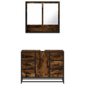 This stylish bathroom furniture set is an excellent addition to your bathroom, giving it a tidy and striking appearance! Stable and durable material: Engineered wood is a durable and stable material with a smooth surface that is resistant to moisture, warping, and splitting, making it a reliable choice for a variety of projects.Stable and long-lasting frame: The metal frame of the cabinet enhances your interior with an industrial style and provides exceptional durability, stability and resistance to corrosion.Ample storage space: This bathroom furniture offers ample storage space to keep your essentials well organised and within reach.Practical cabinet top: The top of the sink cabinet has a hole, so it is ideal for placing the sink.Wall-mounted function: The washroom mirror cabinet can be wall-mounted to save floor space, which makes it especially suitable for rooms with limited space. Warning:To prevent it from tipping over, this product must be used with the provided wall attachment device. Good to know:Screws and plugs for inside the wall are not included. We advise to find and use screws and plugs suitable specifically for your walls. If you're not sure, you can consult with a professional. Please read and follow each step of the instructions.