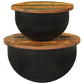 Combining functionality and beauty, this wooden coffee table set will be the focal point of your room. Solid reclaimed wood: Solid reclaimed wood consists of reused timbers such as teak, mango wood, pinewood, and beech. These materials are recycled from old buildings such as factories, sheds, and boats. As every piece is handmade, colours will vary for each product.Smooth table top: The smooth table top is easy to clean with a damp cloth and is perfect for placing food, drinks and other decorative items.Wide applications: This side table can be used as a couch table, end table or living room table.Practical design: The side table has a concealed storage compartment beneath the tabletop which provides ample storage space for keeping books, or glassware, etc. organised. Note:The colours may vary from piece to piece, making each piece unique and slightly different from the next. The delivery is random, ensuring the exclusivity and individuality of your product.