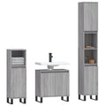 This attractive bathroom cabinet set, with ample storage space, features a stylish yet practical design. Durable material: The engineered wood is of exceptional quality with a smooth surface and features strength, stability and resistance to moisture. Ample storage space: The storage space makes this bathroom furniture set easy to keep things organised. Metal feet: The metal feet add a modern and calm style to your interior while ensuring stability.Easy-to-clean surface: The bathroom unit is easy to clean with a damp cloth. Warning:To prevent it being overturned, this product must be used with the provided wall attachment device. Good to know:Screws and plugs for inside the wall are not included. We advise to find and use screws and plugs suitable specifically for your walls. If you're not sure, you can consult with a professional. Please read and follow each step of the instructions.The sink is not included in the delivery.