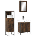vidaXL 3 Piece Bathroom Furniture Set Smoked Oak Engineered Wood