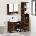 This stylish bathroom furniture set is an excellent addition to your bathroom, giving it a tidy and striking appearance! Stable and durable material: Engineered wood is a durable and stable material with a smooth surface that is resistant to moisture, warping, and splitting, making it a reliable choice for a variety of projects.Stable and long-lasting frame: The metal frame of the cabinet enhances your interior with an industrial style and provides exceptional durability, stability and resistance to corrosion.Ample storage space: This bathroom furniture offers ample storage space to keep your essentials well organised and within reach.Practical cabinet top: The top of the sink cabinet has a hole, so it is ideal for placing the sink.Wall-mounted function: The washroom mirror cabinet can be wall-mounted to save floor space, which makes it especially suitable for rooms with limited space. Warning:To prevent it from tipping over, this product must be used with the provided wall attachment device. Good to know:Screws and plugs for inside the wall are not included. We advise to find and use screws and plugs suitable specifically for your walls. If you're not sure, you can consult with a professional. Please read and follow each step of the instructions.