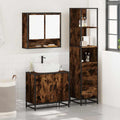 This stylish bathroom furniture set is an excellent addition to your bathroom, giving it a tidy and striking appearance! Stable and durable material: Engineered wood is a durable and stable material with a smooth surface that is resistant to moisture, warping, and splitting, making it a reliable choice for a variety of projects.Stable and long-lasting frame: The metal frame of the cabinet enhances your interior with an industrial style and provides exceptional durability, stability and resistance to corrosion.Ample storage space: This bathroom furniture offers ample storage space to keep your essentials well organised and within reach.Practical cabinet top: The top of the sink cabinet has a hole, so it is ideal for placing the sink.Wall-mounted function: The washroom mirror cabinet can be wall-mounted to save floor space, which makes it especially suitable for rooms with limited space. Warning:To prevent it from tipping over, this product must be used with the provided wall attachment device. Good to know:Screws and plugs for inside the wall are not included. We advise to find and use screws and plugs suitable specifically for your walls. If you're not sure, you can consult with a professional. Please read and follow each step of the instructions.
