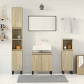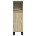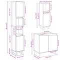 This stylish bathroom furniture set is an excellent addition to your bathroom, giving it a tidy and striking appearance! Durable material: The engineered wood is of exceptional quality with smooth surface and also features strength, stability, and resistance to moisture.Ample storage space: This bathroom furniture offers ample storage space to easily accommodate your essential toiletries and bath items, such as soaps, shampoo, toothpaste, etc.Iron feet: The iron feet add an industrial style to your interior while ensuring the stability of the bathroom storage cabinet.Practical door: Keep your space clutter-free by hiding small essentials behind the door of this bathroom cupboard. And the door can be assembled on the left or right as per your preference. Good to know:Screws and plugs for inside the wall are not included. We advise you to find and use screws and plugs suitable specifically for your walls. If you're not sure, you can consult with a professional. Please read and follow each step of the instructions. Warning:To prevent it from tipping over, this product must be used with the provided wall attachment device.