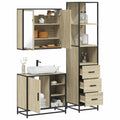 This stylish bathroom furniture set is an excellent addition to your bathroom, giving it a tidy and striking appearance! Stable and durable material: Engineered wood is a durable and stable material with a smooth surface that is resistant to moisture, warping, and splitting, making it a reliable choice for a variety of projects.Stable and long-lasting frame: The metal frame of the cabinet enhances your interior with an industrial style and provides exceptional durability, stability and resistance to corrosion.Ample storage space: This bathroom furniture offers ample storage space to keep your essentials well organised and within reach.Practical cabinet top: The top of the sink cabinet has a hole, so it is ideal for placing the sink.Wall-mounted function: The washroom mirror cabinet can be wall-mounted to save floor space, which makes it especially suitable for rooms with limited space. Warning:To prevent it from tipping over, this product must be used with the provided wall attachment device. Good to know:Screws and plugs for inside the wall are not included. We advise to find and use screws and plugs suitable specifically for your walls. If you're not sure, you can consult with a professional. Please read and follow each step of the instructions.