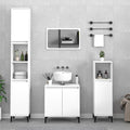 This stylish bathroom furniture set, featuring spacious storage space, is an excellent addition to your bathroom, giving it a tidy and striking appearance! Durable material: The engineered wood is of exceptional quality with a smooth surface and features strength, stability and resistance to moisture.Ample storage space: These bathroom cabinets offer ample storage space for keeping your bathroom supplies well organised.Metal feet: The metal feet add a modern and calm style to your interior while ensuring stability.Easy-to-clean surface: The bathroom unit is easy to clean with a damp cloth.Stylish design: The clean lines and sleek design blend into your bathroom perfectly. Warning:To prevent it being overturned, this product must be used with the provided wall attachment device. Good to know:Screws and plugs for inside the wall are not included. We advise to find and use screws and plugs suitable specifically for your walls. If you're not sure, you can consult with a professional. Please read and follow each step of the instructions.
