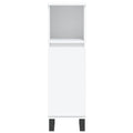 This trendy bathroom furniture set is meant to be an excellent addition to your bathroom, giving it a tidy and striking appearance! Durable material: The engineered wood is of exceptional quality with smooth surface and also features strength, stability and resistance to moisture. Iron feet: The iron feet add a modern and calm style to your interior while ensuring stability.Ample storage space: The bathroom cabinet provides various storage options and spacious space for you to store items in your bathroom. Practical design: The top of the bathroom sink cabinet is ideal for placing the sink. Warning:To prevent it being overturned, this product must be used with the provided wall attachment device. Good to know:The sink is not included in the delivery.Screws and plugs for inside the wall are not included. We advise to find and use screws and plugs suitable specifically for your walls. If you're not sure, you can consult with a professional. Please read and follow each step of the instructions.