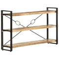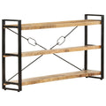 Add a touch of industrial style to your home or office with this 3-tier wooden bookcase. This bookshelf presents an ideal solution for storing and displaying your book collection, magazines, documents, or decorative items like photo frames and collectibles. The bookcase has a sturdy powder-coated steel frame which gives it an industrial look. The shelves are made of solid rough mango wood, which is stable, durable and beautiful, and the craftsmanship adds to its spectacular retro style. Every step of the process is carried out with the greatest care, be it polishing, painting or lacquering. The craftsmanship and the beautiful wood grains make every piece of furniture unique and slightly different from the next. Important note: Colours vary from piece to piece, making each of bookcases unique. The delivery is random, ensuring the exclusivity and individuality of your product.