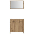 This stylish bathroom furniture set is an excellent addition to your bathroom, giving it a tidy and striking appearance! Stable and durable material: Engineered wood is a durable and stable material with a smooth surface that is resistant to moisture, warping, and splitting, making it a reliable choice for a variety of projects.Ample storage space: This bathroom furniture offers ample storage space to keep your essentials well organised and within reach.Practical door: The door of the storage cabinet provides enclosed storage space to keep your belongings organised, protected and out of sight.Minimalistic mirror: The minimalistic mirror provides the view for makeup application and adds a stylish touch to the bathroom vanity unit.Easy to maintain: Thanks to its smooth surface, the bathroom cabinet is easy to clean with a damp cloth and requires less maintenance. Warning:To prevent it from tipping over, this product must be used with the provided wall attachment device. Good to know:Screws and plugs for inside the wall are not included. We advise to find and use screws and plugs suitable specifically for your walls. If you're not sure, you can consult with a professional. Please read and follow each step of the instructions.The cabinet side panel consists of two connected parts.