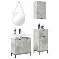 This bathroom furniture set is all about contemporary style, mixing simplicity with practicality in its modern design. Its clean lines, minimal frills, and smooth finish create a sleek and functional solution, perfect for modern bathrooms that want to make the most of space and style. Ideal for those who value practicality without skimping on looks, this set fits right in with any interior design, boosting the bathroom's vibe while keeping essentials neatly organized. Materials: Crafted from engineered wood, known for its consistent grain and rich tones, this furniture set is tough against daily wear and tear. Its stain-resistant properties help it stay looking fab over time, cutting down on constant cleaning. Included Components: This set includes a sink cabinet and two cabinets, all with hinge doors and handy shelves for stashing toiletries. The shelves make it easy to store all sorts of bathroom essentials. Features: With loads of storage space, this bathroom set helps you keep things tidy. It comes with drawers and compartments designed for easy organization, supporting a neat and balanced bathroom vibe. Recommended Uses: Perfect for indoor use, this furniture set is made for bathrooms but can easily fit into other areas of your home that need extra storage. Its modern look suits both contemporary and minimalist styles. Care & Maintenance: Taking care of this set is a breeze thanks to its smooth finish. Just give it a wipe with a damp cloth to keep it looking good. The matte finish handles and other bits don’t need any special treatment, making upkeep simple.