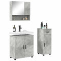 This Modern Bathroom Furniture Set is a top-notch storage option designed to mix style and function in any bathroom. Its sleek, modern vibe is perfect for those wanting to keep things neat and tidy. The rectangular shape fits in easily with different decor styles, adding a touch of elegance. It's ideal for both homes and shared bathrooms, making sure everyone enjoys a smart and uncluttered space. Materials: Made entirely from engineered wood, this set is built to endure while looking good over time. Engineered wood is chosen for its water resistance and classy finish, making it perfect for bathrooms. Included Components: You'll get a wall-mounted sink cabinet, a mirror cabinet with a flat mirror, and a bathroom cabinet. Each piece is practical and helps keep your bathroom looking neat. The flat mirror's surface is great for grooming, adding a stylish touch. Features / Function / Design: The flush door and bar handles make everyday use easy, blending comfort with a sleek look. These features highlight the overall smarts of the set, enhancing your experience and satisfaction. Recommended Uses: Made for indoor bathrooms, these cabinets have loads of room for your essentials, keeping everything organized and chic. Their neutral design means they fit in well with any personal or shared bathroom. Care & Maintenance: Keeping this set looking good is simple – just a damp cloth to wipe it down. A bit of easy care helps keep it in top shape, ensuring it lasts and looks lovely.