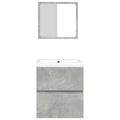 This bathroom sink cabinet with a built-in basin and mirror, featuring spacious storage space, is a chic and timeless addition to any bathroom or washroom. Sturdy material: The under sink cabinet is made of engineered wood, that is of exceptional quality with smooth surface and also features strength, stability and resistance to moisture.Ample storage: The bathroom sink unit features a drawer, offering ample storage space to store items in your bathroom.Practical design: The top of this bathroom cabinet is ideal for placing the sink.Wall-mounted function: The bathroom cabinet and the make up mirror can be wall-mounted to add extra storage space. That way, you can maximise your floor space and keep the area clean.Overflow function: An overflow is also equipped to flow water out when it gets too full. Note:Screw(s) and plug(s) for inside the wall are not included. Seek and use screw(s) and plug(s) suitable for your walls. If you are uncertain, seek professional advice. Read and follow each step of the instruction carefully.The tap and the drain are not included in delivery.Each product comes with an assembly manual in the box for easy assembly.