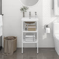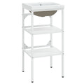 This bathroom washbasin frame with a bulid-in basin is a perfect match for your bathroom or washroom with a clean, tidy appearance. The wash stand is made of powder-coated iron, making it stable and durable. This washbasin frame gives easy access to towels and baskets and creates a more ample space than closed storage. Made of ceramic, the basin can not only serve as a vessel for daily use but also as an adornment in your living space. Thanks to its trendsetting and contemporary design, this washbasin will definitely suit any decor. An overflow is also equipped to flow water out when it gets too full. Its glazed surface brings itself a modern yet elegant design. Additionally, the washbasin frame and basin are easy to clean with a damp cloth. Please note: The tap and the drain are not included in the delivery.