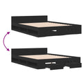 Add a modern touch to your bedroom with this bed frame with drawers! It makes a practical and decorative addition to your living space. Durable material: The bed frame is made of engineered wood. The engineered wood is of exceptional quality with a smooth surface and also features strength, stability, and resistance to moisture.Sturdy slats: The plywood slats provide good weight distribution, ensuring the mattress stays in place with every twist and turn of your body during sleep.Storage function: The included bed drawers and side compartments provide ample storage space for storing your essentials, keeping your room clean and tidy. Good to know:A mattress is not included with this bed. We do offer a various selection of mattresses. You can check our shop for a matching mattress.
