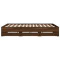 Add a modern touch to your bedroom with this bed frame with drawers! It makes a practical and decorative addition to your living space. Durable material: The bed frame is made of engineered wood. The engineered wood is of exceptional quality with a smooth surface and also features strength, stability, and resistance to moisture.Sturdy slats: The plywood slats provide good weight distribution, ensuring that the mattress stays in place with every twist and turn of your body during sleep.Storage function: The included bed drawers provide ample storage space for storing your essentials, keeping your room clean and tidy. Good to know:A mattress is not included with this bed. We do offer a various selection of mattresses. You can check our shop for a matching mattress.