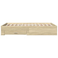 Add a modern touch to your bedroom with this bed frame with drawers! It makes a practical and decorative addition to your living space. Durable material: The bed frame is made of engineered wood. The engineered wood is of exceptional quality with a smooth surface and also features strength, stability, and resistance to moisture.Sturdy slats: The plywood slats provide good weight distribution, ensuring the mattress stays in place with every twist and turn of your body during sleep.Storage function: The included bed drawers provide ample storage space for storing your essentials, keeping your room clean and tidy. Good to know:A mattress is not included with this bed. We do offer a various selection of mattresses. You can check our shop for a matching mattress.