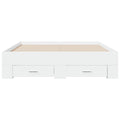 Add a modern touch to your bedroom with this bed frame with drawers! It makes a practical and decorative addition to your living space. Durable material: The bed frame is made of engineered wood. The engineered wood is of exceptional quality with a smooth surface and also features strength, stability, and resistance to moisture.Sturdy slats: The plywood slats provide good weight distribution, ensuring the mattress stays in place with every twist and turn of your body during sleep.Storage function: The included bed drawers provide ample storage space for storing your essentials, keeping your room clean and tidy. Good to know:A mattress is not included with this bed. We do offer a various selection of mattresses. You can check our shop for a matching mattress.