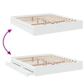 Add a modern touch to your bedroom with this bed frame with drawers! It makes a practical and decorative addition to your living space. Durable material: The bed frame is made of engineered wood. The engineered wood is of exceptional quality with a smooth surface and also features strength, stability, and resistance to moisture.Sturdy slats: The plywood slats provide good weight distribution, ensuring the mattress stays in place with every twist and turn of your body during sleep.Storage function: The included bed drawers provide ample storage space for storing your essentials, keeping your room clean and tidy. Good to know:A mattress is not included with this bed. We do offer a various selection of mattresses. You can check our shop for a matching mattress.
