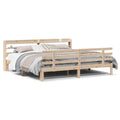 Enjoy a good night's sleep in this wooden bed frame! It makes a practical and decorative addition to your interior. Solid pine wood: Solid pine wood is a beautiful natural material. Pine wood has a straight grain, and the knots give the material its signature, rustic look.Sturdy bed frame: The wooden frame ensures sturdiness and stability. The plywood slats provide good weight distribution, ensuring that the mattress stays in place with every twist and turn of your body during sleep.Functional headboard and footboard: The headboard and footboard of the wooden bed can keep your mattress in place. Also, the headboard provides you with excellent back support when you sit up in bed to read or watch TV.Ample storage space: This sleek headboard features two convenient shelves, offering ample storage space to keep all your nighttime essentials within easy reach. Good to know:A mattress is not included with this bed. We do offer a various selection of mattresses. You can check our shop for a matching mattress.