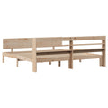 Enjoy a good night's sleep in this wooden bed frame! It makes a practical and decorative addition to your interior. Solid pine wood: Solid pine wood is a beautiful natural material. Pine wood has a straight grain, and the knots give the material its signature, rustic look.Plywood slats: The plywood slats provide good weight distribution, ensuring your mattress with much-needed support and breathability.Ample storage space: This sleek headboard of the bed features two convenient shelves, offering ample storage space to keep all your nighttime essentials within easy reach.Freestanding headboard: The freestanding headboard offers a hassle-free solution for effortless placement and repositioning without the need for wall installation. Good to know: A mattress is not included with this bed. We do offer a various selection of mattresses. You can check our shop for a matching mattress.