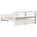 Enjoy a good night's sleep in this wooden bed frame! It makes a practical and decorative addition to your interior. Solid pine wood: Solid pine wood is a beautiful natural material. Pine wood has a straight grain, and the knots give the material its signature, rustic look.Sturdy bed frame: The wooden frame ensures sturdiness and stability. The plywood slats provide good weight distribution, ensuring that the mattress stays in place with every twist and turn of your body during sleep.Functional headboard and footboard: The headboard and footboard of the wooden bed can keep your mattress in place. Also, the headboard provides you with excellent back support when you sit up in bed to read or watch TV.Ample storage space: This sleek headboard features two convenient shelves, offering ample storage space to keep all your nighttime essentials within easy reach. Good to know:A mattress is not included with this bed. We do offer a various selection of mattresses. You can check our shop for a matching mattress.