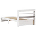 Enjoy a good night's sleep in this wooden bed frame! It makes a practical and decorative addition to your interior. Solid pine wood: Solid pine wood is a beautiful natural material. Pine wood has a straight grain, and the knots give the material its signature, rustic look.Sturdy bed frame: The wooden frame ensures sturdiness and stability. The plywood slats provide good weight distribution, ensuring that the mattress stays in place with every twist and turn of your body during sleep.Versatile headboard: This bed frame comes with a headboard that provides excellent back support when you sit up in bed to read or watch TV, while also serving as a decorative element.Ample storage space: This sleek headboard features two convenient shelves, offering ample storage space to keep all your nighttime essentials within easy reach. Good to know:A mattress is not included with this bed. We do offer a various selection of mattresses. You can check our shop for a matching mattress.