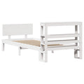 Enjoy a good night's sleep in this wooden bed frame! It makes a practical and decorative addition to your interior. Solid pine wood: Solid pine wood is a beautiful natural material. Pine wood has a straight grain, and the knots give the material its signature, rustic look.Plywood slats: The plywood slats provide good weight distribution, ensuring your mattress with much-needed support and breathability.Ample storage space: This sleek headboard of the bed features two convenient shelves, offering ample storage space to keep all your nighttime essentials within easy reach.Freestanding headboard: The freestanding headboard offers a hassle-free solution for effortless placement and repositioning without the need for wall installation. Good to know: A mattress is not included with this bed. We do offer a various selection of mattresses. You can check our shop for a matching mattress.