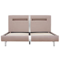 This classic bed frame with a colour-changing LED strip will become the focal point of your bedroom. Distinguished by an understated yet elegant design, this bed frame adds a touch of elegant charm to your bedroom decor. Made of wood and steel, this bed frame is exceedingly sturdy and durable. The solid wood legs add extra durability to the bed. Additionally, upholstered in durable faux leather, the bed exudes an inviting look, and it is easy to clean. Besides, you can conveniently adjust the power, brightness and different flashing colours of the LED light strip with the included fully functional 24-key remote control to create a stunning light show. This bed frame is suitable for a mattress of 135 x 190 cm. Please note that delivery includes a bed frame only; a mattress is not included. The bed is easy to assemble. You can check our shop for the matching mattresses.