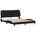 Get a better restful night's sleep from this bed frame with LED lights! It makes a welcoming addition to any bedroom. Durable faux leather: Premium faux leather is a highly durable material. It is resistant to stain, making it easy to clean with a damp cloth. The smooth surface also gives a luxurious look and the beauty of real leather.Plywood slats: The plywood slats provide good weight distribution, ensuring that the mattress stays in place with every twist and turn of your body during sleep.Excellent support: The bed header provides you with excellent back support while you're sitting up in bed to read or watch TV.Colourful LED strip: Bring playfulness into darkness with colourful LED lights! The hook and loop fasteners on the back of the headboard cushion can be used to secure the LED lights.Waved side design: The waved look of the bed frame is stylish and sophisticated, adding a modern and elegant touch to your decor, making it the focal point of your bedroom. Good to know:A mattress is not included with this bed. We do offer a various selection of mattresses. You can check our shop for a matching mattress.The product has a USB connector that requires a certified 5V USB power source (not included).