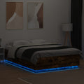 vidaXL Bed Frame with LED without Mattress Smoked Oak 140x200 cm