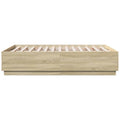 Get a better restful night's sleep from this bed frame with LED lights! It makes a welcoming addition to any bedroom. Durable material: The engineered wood is of exceptional quality with smooth surface and also features strength, stability and resistance to moisture.RGB LED lights: The bed frame is equipped with vibrant RGB LED lights. With various customisable menus, you can effortlessly change the colour of the lights and even set them to adjust automatically. These LED lights not only enhance the contemporary look of the bed base but also add to its trendy appeal.Sturdy slats: The plywood slats provide good weight distribution, ensuring that the mattress stays in place with every twist and turn of your body during sleep. Good to know:A mattress is not included with this bed. We do offer a various selection of mattresses. You can check our shop for a matching mattress.The product has a USB connector that requires a certified 5V USB power source (not included).