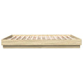 Get a better restful night's sleep from this bed frame with LED lights! It makes a welcoming addition to any bedroom. Durable material: The engineered wood is of exceptional quality with smooth surface and also features strength, stability and resistance to moisture.RGB LED lights: The bed frame is equipped with vibrant RGB LED lights. With various customisable menus, you can effortlessly change the colour of the lights and even set them to adjust automatically. These LED lights not only enhance the contemporary look of the bed base but also add to its trendy appeal.Sturdy slats: The plywood slats provide good weight distribution, ensuring that the mattress stays in place with every twist and turn of your body during sleep. Good to know:A mattress is not included with this bed. We do offer a various selection of mattresses. You can check our shop for a matching mattress.The product has a USB connector that requires a certified 5V USB power source (not included).