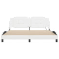 Get a better restful night's sleep from this bed frame with LED lights! It makes a welcoming addition to any bedroom. Durable faux leather: Premium faux leather is a highly durable material. It is resistant to stain, making it easy to clean with a damp cloth. The smooth surface also gives a luxurious look and the beauty of real leather.Plywood slats: The plywood slats provide good weight distribution, ensuring that the mattress stays in place with every twist and turn of your body during sleep.Excellent support: The bed header provides you with excellent back support while you're sitting up in bed to read or watch TV.Colourful LED strip: Bring playfulness into darkness with colourful LED lights! The hook and loop fasteners on the back of the headboard cushion can be used to secure the LED lights.Waved side design: The waved look of the bed frame is stylish and sophisticated, adding a modern and elegant touch to your decor, making it the focal point of your bedroom. Good to know:A mattress is not included with this bed. We do offer a various selection of mattresses. You can check our shop for a matching mattress.The product has a USB connector that requires a certified 5V USB power source (not included).
