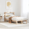 Enjoy a good night's sleep in this wooden bed frame! It makes a practical and decorative addition to your interior. Stable and long-lasting frame: Solid pinewood is known for its strength and durability. Its straight grains and distinctive knots contribute to its rustic charm.Ample storage space: This sleek headboard features convenient shelves, offering ample storage space to keep all your nighttime essentials within easy reach.Versatile headboard: This single bed frame comes with a headboard that provides excellent back support when you sit up in bed to read or watch TV, while also serving as a decorative element.Slatted base for optimal support: The bed base is equipped with a slatted base for support and breathability for your mattress. Good to know:A mattress is not included with this bed. We do offer a various selection of mattresses. You can check our shop for a matching mattress.
