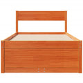 Add a modern touch to your bedroom with this bed frame with drawers! It makes a practical and decorative addition to your living space. Stable and long-lasting frame: Solid pinewood is known for its strength and durability. Its straight grains and distinctive knots contribute to its rustic charm.Plywood slats: The plywood slats provide good weight distribution, ensuring that the mattress stays in place with every twist and turn of your body during sleep.Storage function: The included bed drawers provide ample storage space for storing your essentials, keeping your room clean and tidy.Versatile headboard: This bed frame comes with a headboard that provides excellent back support when you sit up in bed to read or watch TV, while also serving as a decorative element. Good to know:A mattress is not included with this bed. We do offer a various selection of mattresses. You can check our shop for a matching mattress.