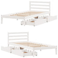 Get a better restful night's sleep from this bed frame! It makes a welcoming addition to any bedroom. Stable and long-lasting frame: Solid pinewood is known for its strength and durability. Its straight grains and distinctive knots contribute to its rustic charm.Slatted base for optimal support: The bed frame is equipped with a slatted base for support and breathability for your mattress.Make full use of space: This bed frame features two drawers underneath, providing storage for items like extra bedding, seasonal clothing, and toys.Effortless manoeuvrability: This under-bed storage drawer features four wheels, providing smooth and effortless manoeuvrability for sliding in and out from beneath your bed. Good to know:A mattress is not included with this bed. We do offer a various selection of mattresses. You can check our shop for a matching mattress.