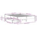 Get a better restful night's sleep from this bed frame! It makes a welcoming addition to any bedroom. Stable and long-lasting frame: Solid pinewood is known for its strength and durability. Its straight grains and distinctive knots contribute to its rustic charm.Slatted base for optimal support: The bed frame is equipped with a slatted base for support and breathability for your mattress.Make full use of space: This bed frame features two drawers underneath, providing storage for items like extra bedding, seasonal clothing, and toys.Effortless manoeuvrability: This under-bed storage drawer features four wheels, providing smooth and effortless manoeuvrability for sliding in and out from beneath your bed. Good to know:A mattress is not included with this bed. We do offer a various selection of mattresses. You can check our shop for a matching mattress.