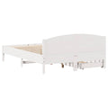 Get a better restful night's sleep from this bed frame! It makes a welcoming addition to any bedroom. Stable and long-lasting frame: Solid pinewood is known for its strength and durability. Its straight grains and distinctive knots contribute to its rustic charm.Slatted base for optimal support: The bed frame is equipped with a slatted base for support and breathability for your mattress.Versatile headboard: This bed frame comes with a headboard that provides excellent back support when you sit up in bed to read or watch TV, while also serving as a decorative element.Make full use of space: This bed frame features two drawers underneath, providing storage for items like extra bedding, seasonal clothing, and toys.Effortless manoeuvrability: This under-bed storage drawer features four wheels, providing smooth and effortless manoeuvrability for sliding in and out from beneath your bed. Good to know:A mattress is not included with this bed. We do offer a various selection of mattresses. You can check our shop for a matching mattress.