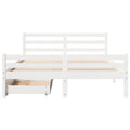 Get a better restful night's sleep from this bed frame! It makes a welcoming addition to any bedroom. Stable and long-lasting frame: Solid pinewood is known for its strength and durability. Its straight grains and distinctive knots contribute to its rustic charm.Slatted base for optimal support: The bed frame is equipped with a slatted base for support and breathability for your mattress.Make full use of space: This bed frame features two drawers underneath, providing storage for items like extra bedding, seasonal clothing, and toys.Effortless manoeuvrability: This under-bed storage drawer features four wheels, providing smooth and effortless manoeuvrability for sliding in and out from beneath your bed. Good to know:A mattress is not included with this bed. We do offer a various selection of mattresses. You can check our shop for a matching mattress.