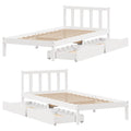 Get a better restful night's sleep from this bed frame! It makes a welcoming addition to any bedroom. Stable and long-lasting frame: Solid pinewood is known for its strength and durability. Its straight grains and distinctive knots contribute to its rustic charm.Slatted base for optimal support: The bed frame is equipped with a slatted base for support and breathability for your mattress.Make full use of space: This bed frame features two drawers underneath, providing storage for items like extra bedding, seasonal clothing, and toys.Effortless manoeuvrability: This under-bed storage drawer features four wheels, providing smooth and effortless manoeuvrability for sliding in and out from beneath your bed. Good to know:A mattress is not included with this bed. We do offer a various selection of mattresses. You can check our shop for a matching mattress.