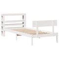 Enjoy a good night's sleep in this wooden bed frame! It makes a practical and decorative addition to your interior. Solid pine wood: Solid pine wood is a beautiful natural material. Pine wood has a straight grain, and the knots give the material its signature, rustic look.Plywood slats: The plywood slats provide good weight distribution, ensuring your mattress with much-needed support and breathability.Ample storage space: This sleek headboard of the bed features two convenient shelves, offering ample storage space to keep all your nighttime essentials within easy reach.Freestanding headboard: The freestanding headboard offers a hassle-free solution for effortless placement and repositioning without the need for wall installation. Good to know: A mattress is not included with this bed. We do offer a various selection of mattresses. You can check our shop for a matching mattress.