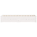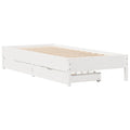Get a better restful night's sleep from this bed frame! It makes a welcoming addition to any bedroom. Stable and long-lasting frame: Solid pinewood is known for its strength and durability. Its straight grains and distinctive knots contribute to its rustic charm.Slatted base for optimal support: The bed frame is equipped with a slatted base for support and breathability for your mattress.Make full use of space: This bed frame features two drawers underneath, providing storage for items like extra bedding, seasonal clothing, and toys.Effortless manoeuvrability: This under-bed storage drawer features four wheels, providing smooth and effortless manoeuvrability for sliding in and out from beneath your bed. Good to know:A mattress is not included with this bed. We do offer a various selection of mattresses. You can check our shop for a matching mattress.