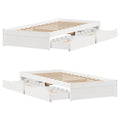 Get a better restful night's sleep from this bed frame! It makes a welcoming addition to any bedroom. Stable and long-lasting frame: Solid pinewood is known for its strength and durability. Its straight grains and distinctive knots contribute to its rustic charm.Slatted base for optimal support: The bed frame is equipped with a slatted base for support and breathability for your mattress.Make full use of space: This bed frame features two drawers underneath, providing storage for items like extra bedding, seasonal clothing, and toys.Effortless manoeuvrability: This under-bed storage drawer features four wheels, providing smooth and effortless manoeuvrability for sliding in and out from beneath your bed. Good to know:A mattress is not included with this bed. We do offer a various selection of mattresses. You can check our shop for a matching mattress.
