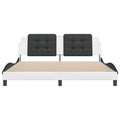 Get a better restful night's sleep from this bed frame with headboard! It makes a welcoming addition to any bedroom. Durable faux leather: Premium faux leather is a highly durable material. It is resistant to stain, making it easy to clean with a damp cloth. The smooth surface also gives a luxurious look and the beauty of real leather.Plywood slats: The plywood slats provide good weight distribution, ensuring that the mattress stays in place with every twist and turn of your body during sleep.Excellent support: The headboard pillow is stuffed with foam for ultra-soft and optimal comfort, providing you with excellent back support while you're sitting up in bed to read or watch TV.Convenient design: The cushion headboard has a zipper for easy installation.Waved side design: The waved look of the bed frame is stylish and sophisticated, adding a modern and elegant touch to your decor, making it the focal point of your bedroom. Good to know:A mattress is not included with this bed. We do offer a various selection of mattresses. You can check our shop for a matching mattress.