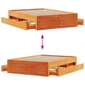 Get a better restful night's sleep from this bed frame! It makes a welcoming addition to any bedroom. Stable and long-lasting frame: Solid pinewood is known for its strength and durability. Its straight grains and distinctive knots contribute to its rustic charm.Slatted base for optimal support: The bed frame is equipped with a slatted base for support and breathability for your mattress.Stable and durable feet: This bed is supported by sturdy feet, ensuring stability, safety, and firmness.Storage function: This bed frame offers drawers for keeping your magazines, books, toys and other small items well-organised. Good to know:A mattress is not included with this bed. We do offer a various selection of mattresses. You can check our shop for a matching mattress.