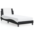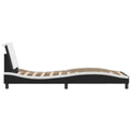 Get a better restful night's sleep from this bed frame with headboard! It makes a welcoming addition to any bedroom. Durable faux leather: Premium faux leather is a highly durable material. It is resistant to stain, making it easy to clean with a damp cloth. The smooth surface also gives a luxurious look and the beauty of real leather.Plywood slats: The plywood slats provide good weight distribution, ensuring that the mattress stays in place with every twist and turn of your body during sleep.Excellent support: The headboard pillow is stuffed with foam for ultra-soft and optimal comfort, providing you with excellent back support while you're sitting up in bed to read or watch TV.Convenient design: The cushion headboard has a zipper for easy installation.Waved side design: The waved look of the bed frame is stylish and sophisticated, adding a modern and elegant touch to your decor, making it the focal point of your bedroom. Good to know:A mattress is not included with this bed. We do offer a various selection of mattresses. You can check our shop for a matching mattress.