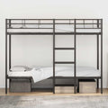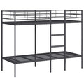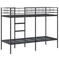 This bunk bed is a space-saving solution with two beds in one, making it ideal for accommodating guests, sleepovers, and families with multiple children. Robust metal construction: The bed frame is made from steel. Steel is an exceptionally hard and strong material that offers exceptional sturdiness and stability.Breathable & supportive base: The bed frame includes a mesh fabric base that provides excellent support and breathability for your mattress.Maximise space utilisation: This bunk bed frame cleverly combines two single beds into one, offering a space-saving solution for accommodating guests, sleepovers, and families with multiple children.Easy to climb up and down: This loft bed features a built-in ladder, providing convenient access for users to climb up and down.Guardrails for enhanced safety: This bed base is equipped with guardrails to prevent you from falling out of bed while sleeping. Warning:To prevent it from tipping over, this product must be used with the wall attachment device (not provided).The upper bed is not suitable for children under 6 years old. Good to know:The mattresses are not included with this bed. We do offer a various selection of mattresses. You can check our shop for a matching mattress.Screws and plugs for inside the wall are not included. We advise to find and use screws and plugs suitable specifically for your walls. If you're not sure, you can consult with a professional. Please read and follow each step of the instructions.