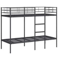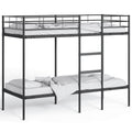 This bunk bed is a space-saving solution with two beds in one, making it ideal for accommodating guests, sleepovers, and families with multiple children. Robust metal construction: The bed frame is made from steel. Steel is an exceptionally hard and strong material that offers exceptional sturdiness and stability.Breathable & supportive base: The bed frame includes a mesh fabric base that provides excellent support and breathability for your mattress.Maximise space utilisation: This bunk bed frame cleverly combines two single beds into one, offering a space-saving solution for accommodating guests, sleepovers, and families with multiple children.Easy to climb up and down: This loft bed features a built-in ladder, providing convenient access for users to climb up and down.Guardrails for enhanced safety: This bed base is equipped with guardrails to prevent you from falling out of bed while sleeping. Warning:To prevent it from tipping over, this product must be used with the wall attachment device (not provided).The upper bed is not suitable for children under 6 years old. Good to know:The mattresses are not included with this bed. We do offer a various selection of mattresses. You can check our shop for a matching mattress.Screws and plugs for inside the wall are not included. We advise to find and use screws and plugs suitable specifically for your walls. If you're not sure, you can consult with a professional. Please read and follow each step of the instructions.
