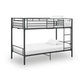 This metal bunk bed is elegant and functional, making it a perfect addition to any room with limited space. It can make an excellent choice for your kids' room as it increases the fun during bedtime right before they go to sleep! Our bunk bed is made of robust metal with powder-coating and ensures great stability and durability. Designed with safety in mind, this bunk bed includes full-length guardrails and a sturdy climbing ladder. The whole bed frame has a sturdy construction out of metal tubing, which makes it very long-lasting and suitable for day-to-day use. The bed is easy to assemble. Please note the mattresses are not included in delivery.